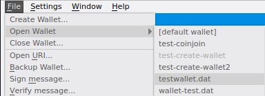 To open a wallet, click File -> Open Wallet and then click the name of wallet file.