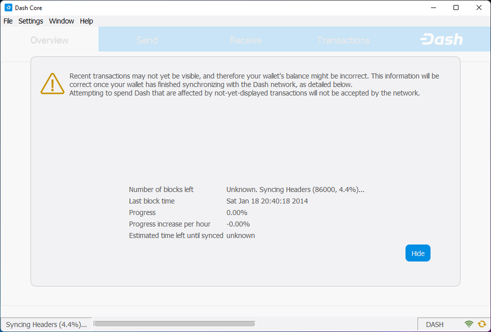 Running Dash Core for the first time#