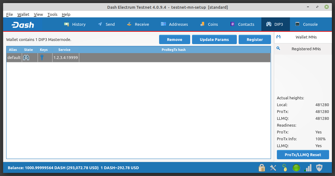 dash.conf file on the masternode. Electrum will provide a notification